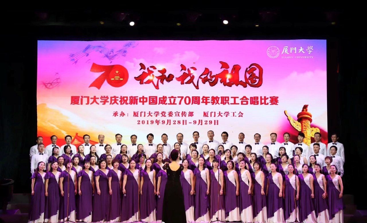 9月29日晚,外文学院行政党支部大部分党员作为学院合唱团成员,参加了学校工会举办的“我和我的祖国”教职工大合唱比赛,以一首《我和我的祖国》倾诉着对祖国的深切情感,以一曲悠扬的《鼓浪屿之波》唱出了对家国、家乡的义重情浓。支部党员陈志伟同志担任主要朗诵人员之一,邹柳新同志担任《鼓浪屿之波》领唱,张欣、朱清坤等同志积极参与了活动筹备和后勤工作,献礼祖国70华诞。最终,学院合唱团取得了二等奖的好成绩,支部党员也做出了自己的一份贡献。