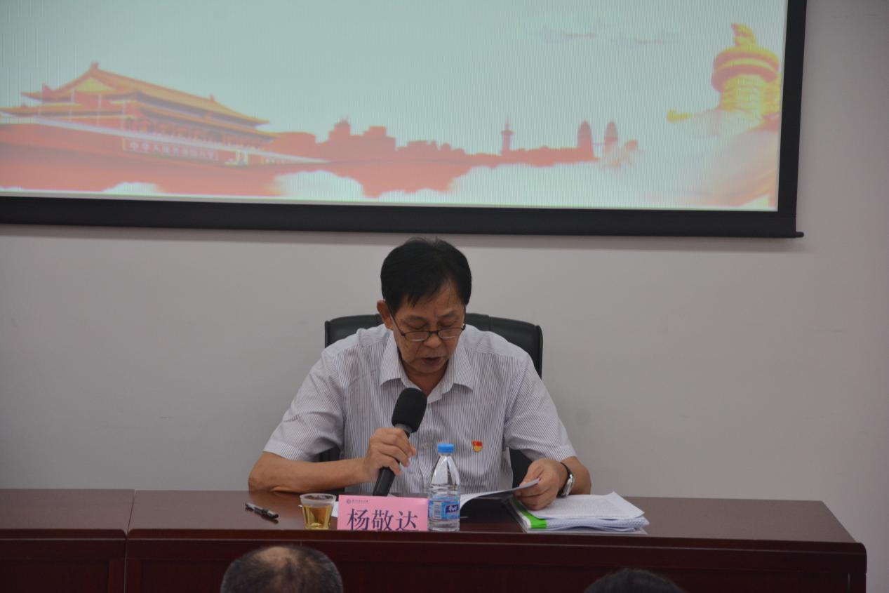 接着,学校第五巡回指导组组长杨敬达同志在会上传达了中央和省委关于开展主题教育的最新精神和要求,对巡回指导组的六项职责任务做了说明,并代表校第五巡回指导组就落实主题教育各项任务提出几点意见。杨敬达强调,要聚焦主题主线,深入学习贯彻习近平新时代中国特色社会主义思想,组织设计好八个专题的学习方案,确保在学懂弄通做实上取得新进步,达到新高度。要把握总体要求,努力实现“12字总要求”和“5句话目标”,紧紧围绕为党育人、为国育才,突出党的政治建设,坚持立德树人,聚焦贯彻落实习近平新时代中国特色社会主义思想,对表对标,着力发现和解决工作中存在的突出问题。要坚持善作善成,统筹推进四项重点措施。学习教育要抓好个人自学和领导班子集中学习研讨;调查研究要着眼查找自身问题和解决实际问题;检视问题要逐一列出问题,从思想、政治、作风、能力、廉洁方面,特别是从主观上、思想上进行剖析;整改落实要即知即改、应改尽改、立行立改。各党支部要抓好学习教育,创新方式方法,认真检视整改。要严格主体责任,切实防止形式主义官僚主义。学院领导班子和领导干部要抓好重点措施落实,将基本要求一贯到底,确保主题教育取得明显实效。杨敬达同志充分肯定了外文学院的主题教育前期准备工作,表示巡回指导组将配合学院党委认真落实要求,严密工作措施,以好的作风,确保主题教育取得好的效果。