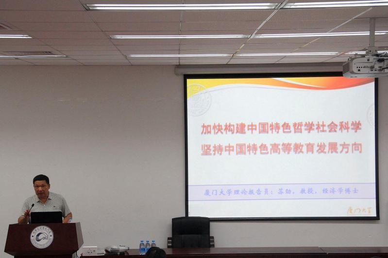 会前,外文学院党委邀请校理论报告员苏劲教授为全体教职工做了“加快构建中国特色哲学社会科学,坚持中国特色高等教育发展方向”的专题辅导报告。苏老师的报告以深厚的专业背景和平实的学术语言帮助外文学院的教职工深入学习领会了习近平总书记在“全国哲学社会科学工作座谈会”和“全国高校思想政治工作会议”上的重要讲话,为外文学院下一阶段的思想政治工作打开了良好开端。