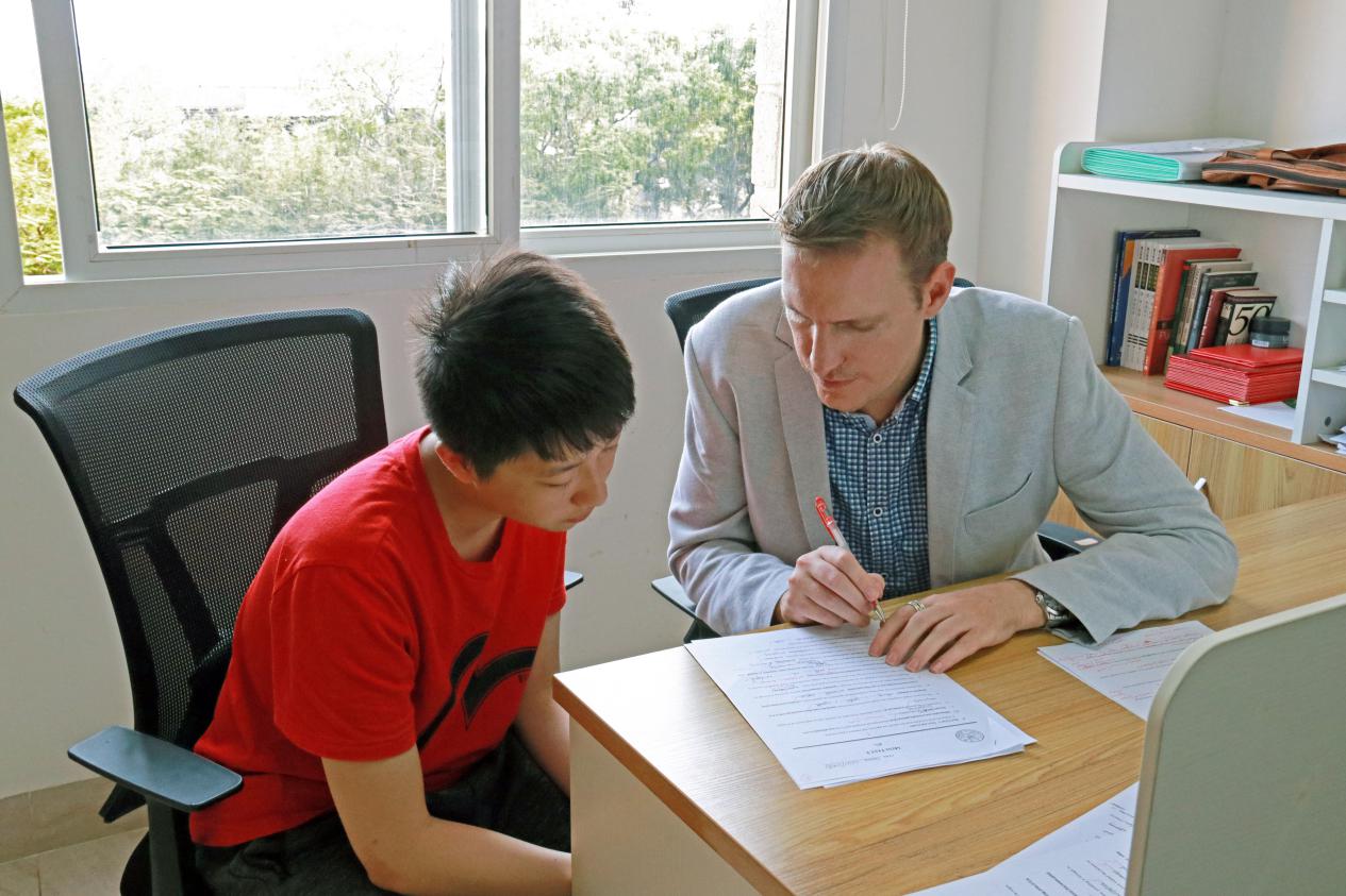 当被问及是否会因为高强度的教学工作感到疲惫厌倦时,Jasen很笃定地表示了否定。他认为,每当看到自己的学生有所进步时,就会觉得一切都是值得的。“有的时候我布置了很难的随堂作业,而我没能在下课前给学生足够的时间去完成,我就会告诉他们这不计分,只是想看看他们的写作程度。但很多学生依然待在座位上,坚持写完作业,一待就是十分钟、甚至二十分钟,这让我深受感动。”Jasen回忆道。