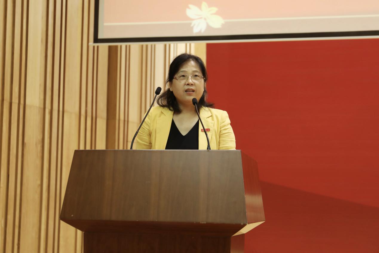 教师代表、欧洲语言文学系刘悦教授对新生提出了三点期望。她回顾了自己的大学生活,通过今昔对比,勉励在场同学珍惜现在的幸福生活,不负韶华,利用好学校和学院提供的学习平台与学术资源。她还引用朱熹“问渠那得清如许,唯有源头活水来”的诗句,将新生比作“半亩方塘”的“活水”,希望新同学们铭记“后浪”身份,勇于担负学科发展的使命。最后,她结合自身感悟,勉励大家秉承校训精神,发扬校主嘉庚先生的爱国主义情怀,感恩荣校,薪火相传。