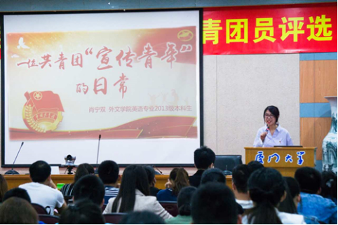 2016年度厦门大学十佳共青团员评选活动于4月25日晚19时在颂恩楼220会议室举行。经过初步遴选,华体网2013级英语专业本科生肖宁双同学从来自25个学院的32名候选人中脱颖而出,进入最终展示环节并成功当选,这也是学校首次采用学生投票的方式决出校“十佳共青团员”人选。