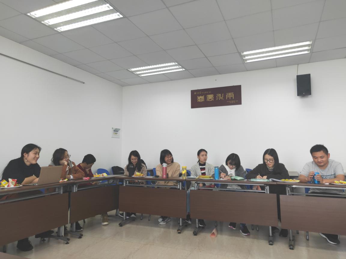 在学院党委的指导和支持下,3月11日下午,外文学院“固定党日+”博士生沙龙活动在德贞楼415顺利举行。本次活动由学院博士生党支部主办,2016级硕士研究生第二党支部、2017级硕士研究生第一党支部和2018级硕士研究生第三党支部共同承办,旨在为学院硕博研究生搭建一个交流分享的平台。