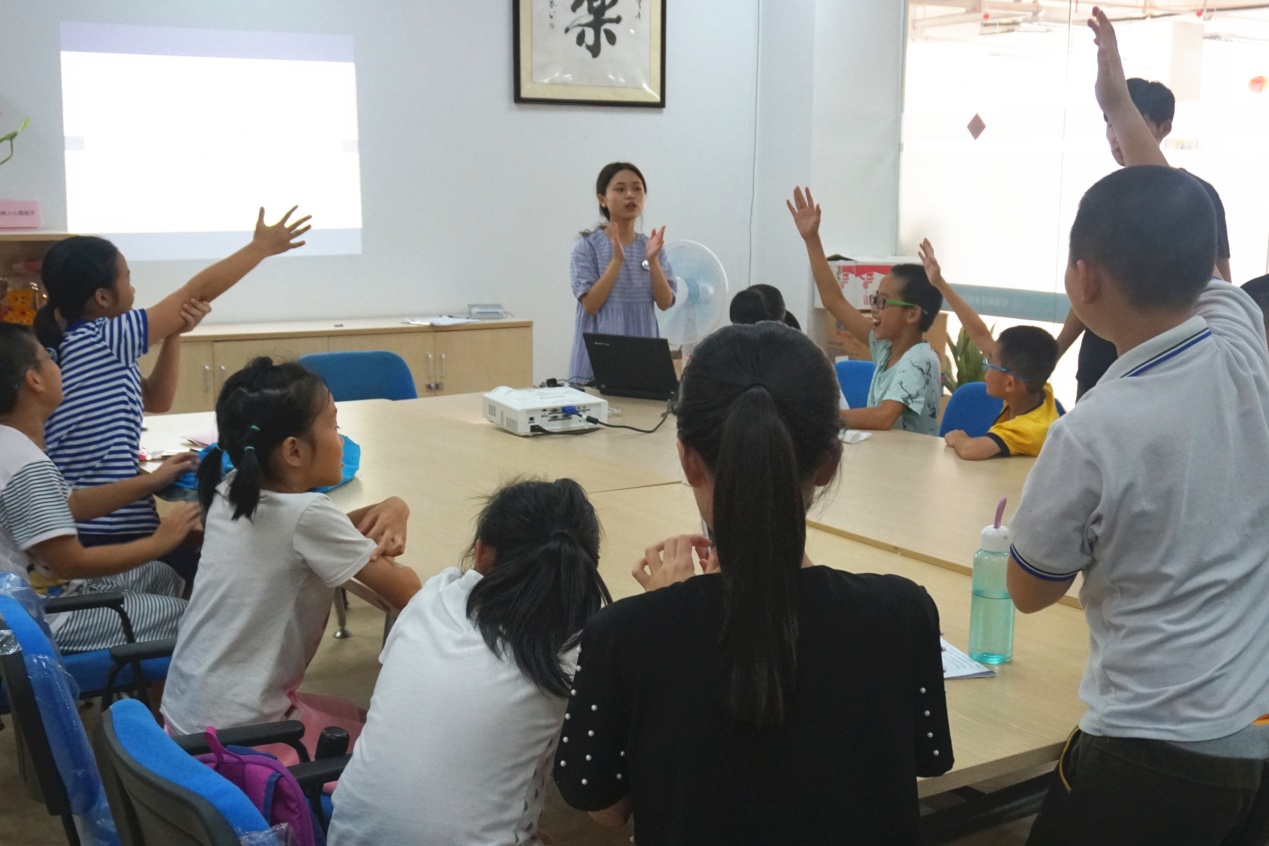 7月7日,实践队员与社区的老人和孩子们初次见面。为了让大家尽快熟悉起来,队员们组织了心理素拓游戏。“你画我猜”、“正话反说”、“击鼓传花”等小游戏简单有趣,倍受大家的喜爱。在欢声笑语之中,社区学员与实践队员迅速拉近了距离。