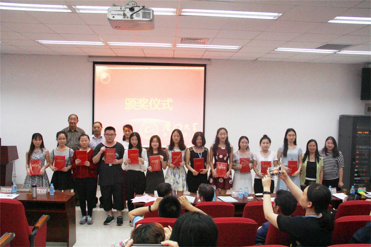 经过激烈的角逐,最终,来自厦门大学的朱玲丽、华侨大学的唐灵云、厦门理工学院的雷琪琪、福建农林大学的刘鑫宇、厦门理工学院的陈国媛、福建师范大学的陈茜等六位选手脱颖而出,获得一等奖;来自闽南理工学院的康凯、厦门大学的胡心悦等12位选手获得二等奖;来自宁德师范学院的陈丽丽、陈扬等24位选手获得三等奖;其余41位参赛选手获得优胜奖。现场领导、嘉宾为获奖选手颁发获奖证书并合影留念。至此,福建省首届“外研博学杯”英语专业诵读、写作邀请赛圆满结束。