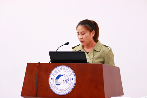 2016年外文学院“永福镇台湾创业园”暑期社会实践队代表韩芳婷同学上台与大家分享了有关实践选题及社会调研的经验技巧。韩芳婷同学结合自身经历,具体讲解了实践过程中的选题、实践计划、成员构成和分工等环节的注意事项,并提醒同学们要在实践前期做好调研准备工作,广泛全面地收集材料,增强访谈问题的针对性,以便更顺利地完成社会实践。
