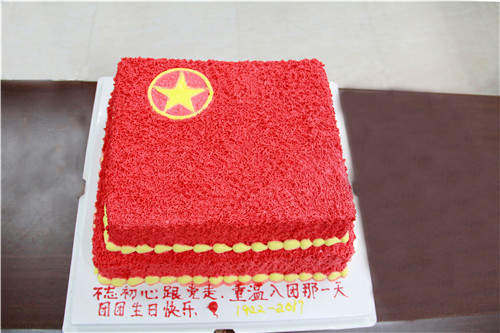 为了本次活动,学院特地定制了一个团旗样式的蛋糕为共青团庆生。火红的蛋糕被分发到每个同学手中,就像每位团员向着共青团的那颗火热的心。同学们吃着蛋糕,甜在心上,感受着共青团大家庭的温暖。活动最后,现场的老师和同学们在卡片上写下了自己对共青团的寄语,圆满结束了这次活动。