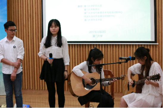 厦门大学外文学院俄语专业同学表演俄罗斯歌曲弹唱《淡紫色的月光下》