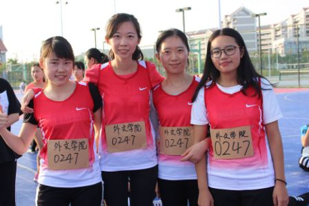 下午17时,观众们终于等来了研究生女子组4*400米决赛,虽然是今天最后一场赛事,但是运动员和观众的热情却攀升的更高。代表外文学院出赛的是2015级硕士生余荣睿和2016级硕士生林晔、张延香、黄娅婷,并取得了小组第二的好成绩。虽然天色已经大黑,但是她们心中的目标却如运动场上的照明灯一样,十分清晰明确,四人之间默契合作,完成了接力棒的完美交接,一直处于小组领先位置,每位同学都倾尽全力、以赴终点,很好地诠释了外文学院“娘子军”坚持不懈和奋战到底的精神,她们是最美外文人。