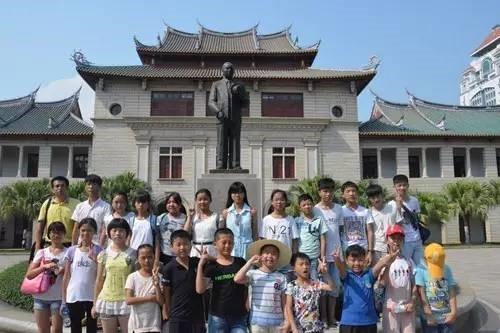 小朋友们在陈嘉庚先生铜像前合影留念