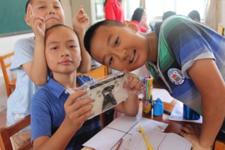 在隔壁教室,上的是美国大哥哥乔治的英语口语课,课堂一如既往地活跃。在乔治老师的鼓励下,六年级和初中的小朋友们都纷纷站起来用英语介绍自己。即使只是简单的三两句话,道出的也是小朋友们与外国友人成功沟通时的喜悦。课后,小朋友们的热情丝毫没有退却,都围着乔治老师询问一些中国词语的英语说法。看来小朋友们都体会到了驰骋学海的快乐,知识的海洋真是让人难以探寻净尽。