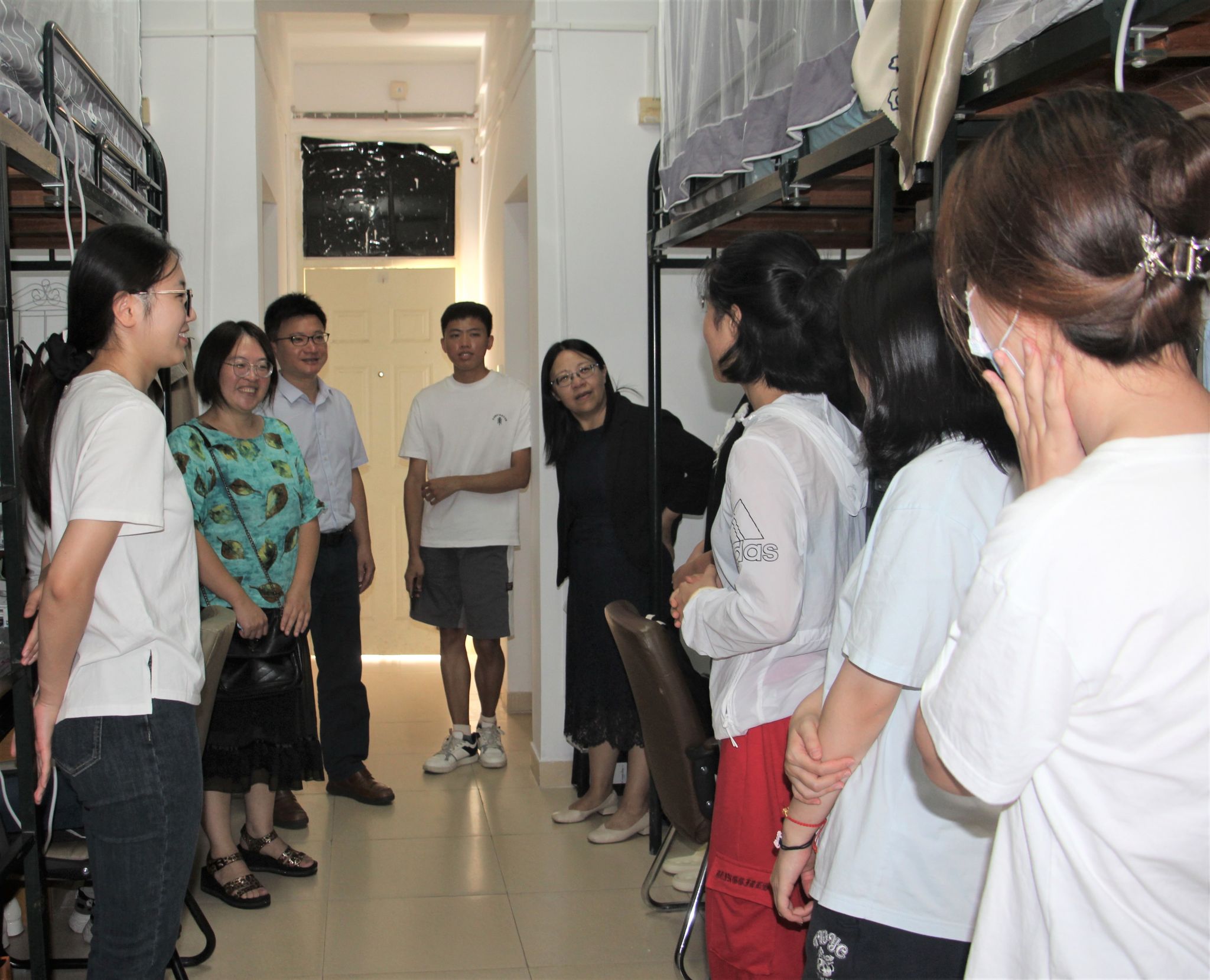 座谈会结束后,学院党委副书记张胜强、副院长辛志英、团委书记吴珊珊、副书记蔡宇走访了全日制研究生新生宿舍,为初抵厦大的新生们送去了亲切而温暖的慰问。老师们与同学们进行了面对面的沟通交流,耐心倾听与解答问题与疑惑,帮助同学们更快适应新环境,顺利地融入外文学院这个大家庭。