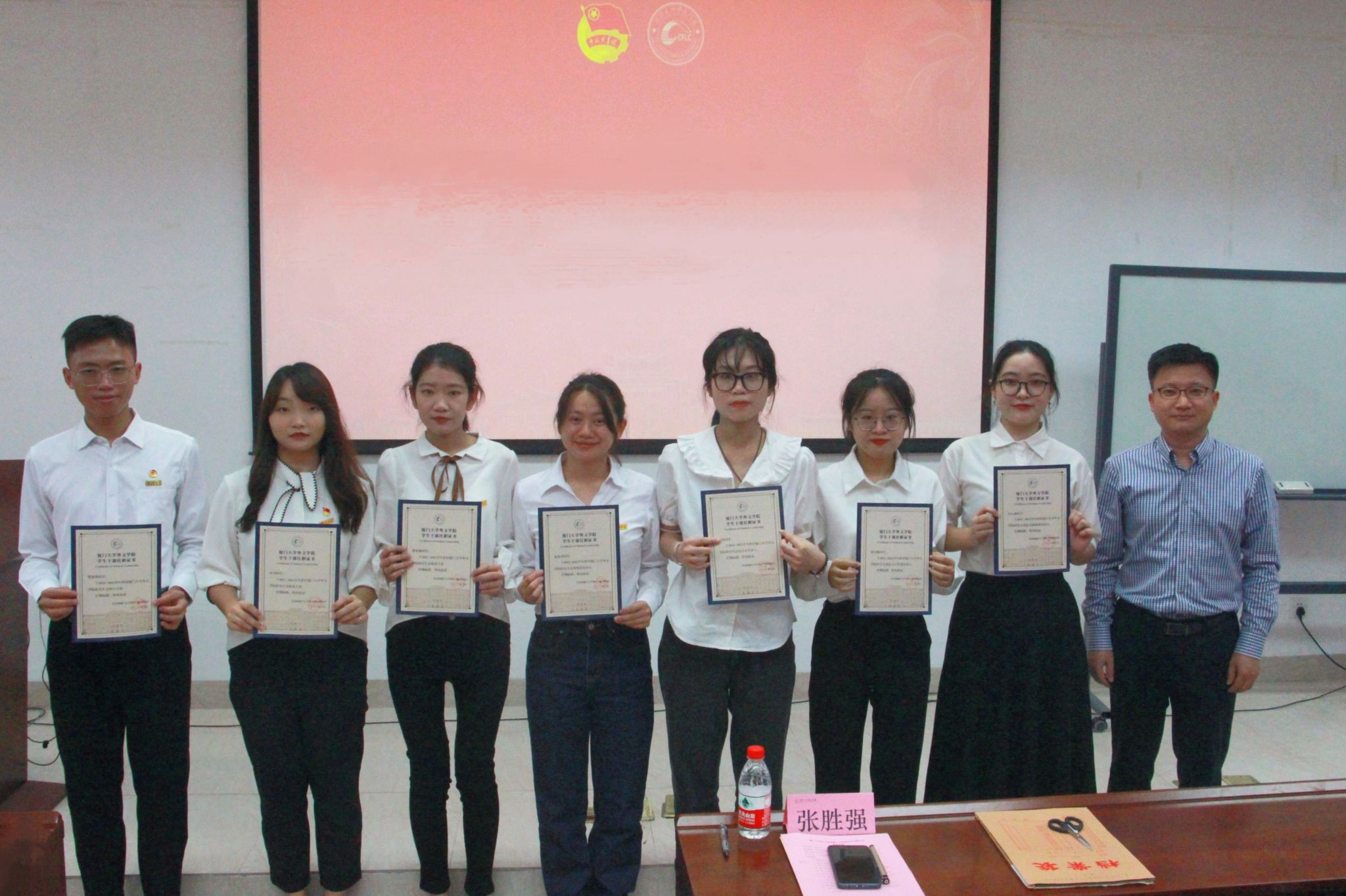 张胜强为学院研究生会成员颁发任职证书,对他们过去一年的辛勤付出表示由衷感谢与肯定。