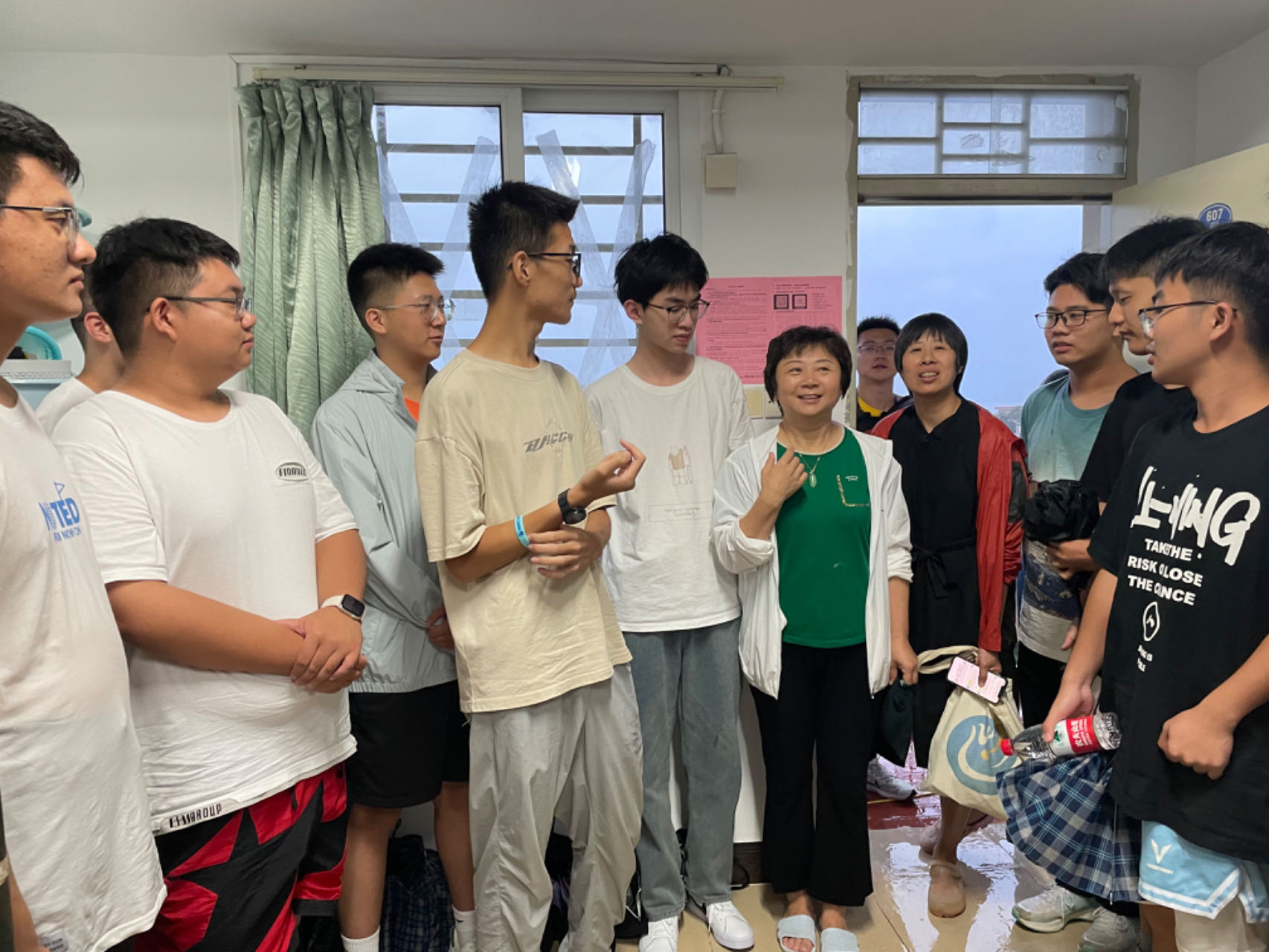 当晚,学院党委书记徐琪,党委副书记沈丽秀,团委副书记戴晓燕等师生深入学生宿舍走访,给新同学送去温暖的问候和关怀。疲惫与不安在欢声笑语中消散,愉悦和期待渐渐充盈这个夜晚。窗外雨声淅淅沥沥,这个秋天,属于2023级外文学子的新景象即将上演。