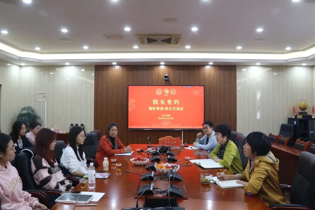 为搭建师生交流平台,加强师生交流,倾听学生心声,提高人才培养质量,促进学科建设发展,12月13日下午,“院长有约——倾听青语·师生交流会”在德贞楼515会议室成功举办。院长陈菁,党委副书记沈丽秀,团委副书记戴晓燕,辅导员张宇宙出席本次活动,2023级学生代表积极参与。