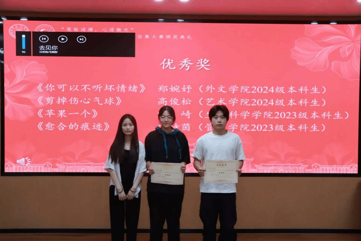 颁奖典礼为精彩纷呈的心理漫画征集大赛画上了圆满的句号。这场关于心灵的艺术盛宴,每一幅作品都如同一扇窗,让我们得以看见创作者内心深处的情感与思考。这些漫画,有的描绘了希望的光芒,有的展现了情感的细腻,但都诠释了世界的多样与美好,为校园心理健康教育注入艺术活力。愿这些充满创意与情感的作品,能够引发师生对心理世界的更多关注与理解,关注心灵成长,拥抱美好未来。