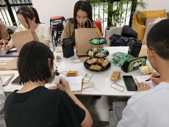 盲盒互换环节中,同学们携带小礼品至现场,手写祝福卡,一并放入盲盒袋,贴上解压关键词,随机地与他人交换盲盒。暖心的刮刮祝福卡、惊喜的盲盒礼物带给了同学们治愈的温度,在欢声笑语中,释放压力,轻松一夏!