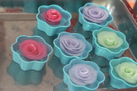 接下来在解说老师们的指导下,制作玫瑰造型的皂心。听老师的讲解,我们以为这应该不难,不料由于我们手法十分笨拙,出来的形状及其僵硬和奇怪,于是求救老师,在老师的妙手之下,一个个鲜艳动人的玫瑰形状跃然手中。老师的手法十分纯熟,在不知不觉中赋予了这些“玫瑰”烟火情长,用纯天然的材质赋予香皂以全新的生命。