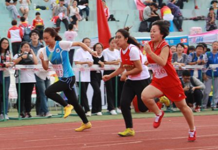 紧接着,在铅球比赛场地的另一边,研究生女子组100米预赛的运动员们已经在赛道起点处蓄势待发。外文学院派出了2016级硕士生高华雪同学和郑一同学征战赛场。高华雪率先迎战,在起点处积极热身,在发令员的指示下做好预备动作,指令枪一响,她便一跃而出,向着终点奋力前进;郑一在身体不适的情况下依然坚持参赛,运动员们奋力奔跑在赛道上的身影正是体育精神的最佳表现。