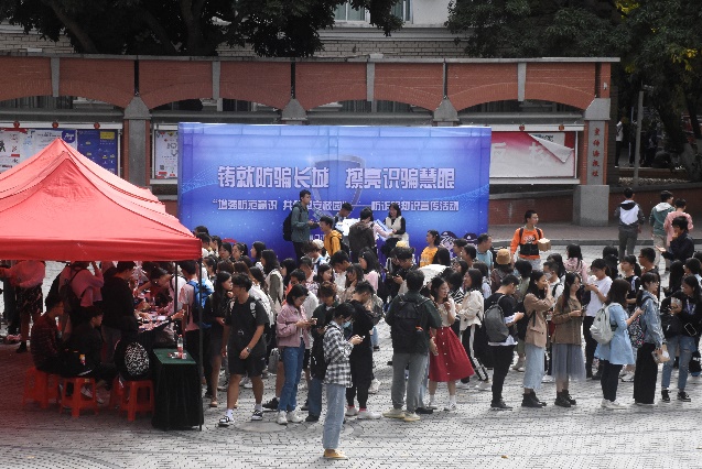 为进一步帮助广大学子有效辨别和应对诈骗行为,切实增强防范意识,11月10日中午,“增强防范意识 共筑平安校园”防诈骗知识宣传活动在三家村广场顺利举办。厦门市公安局大学路派出所教导员曾清勇、四级高级警长薛玉明、一级警长杨福全,外文学院党委副书记杨云良、沈丽秀及各年级辅导员莅临活动现场。外文学院全体学生参与了本次活动,共同学习防诈骗知识,提高自我保护能力。