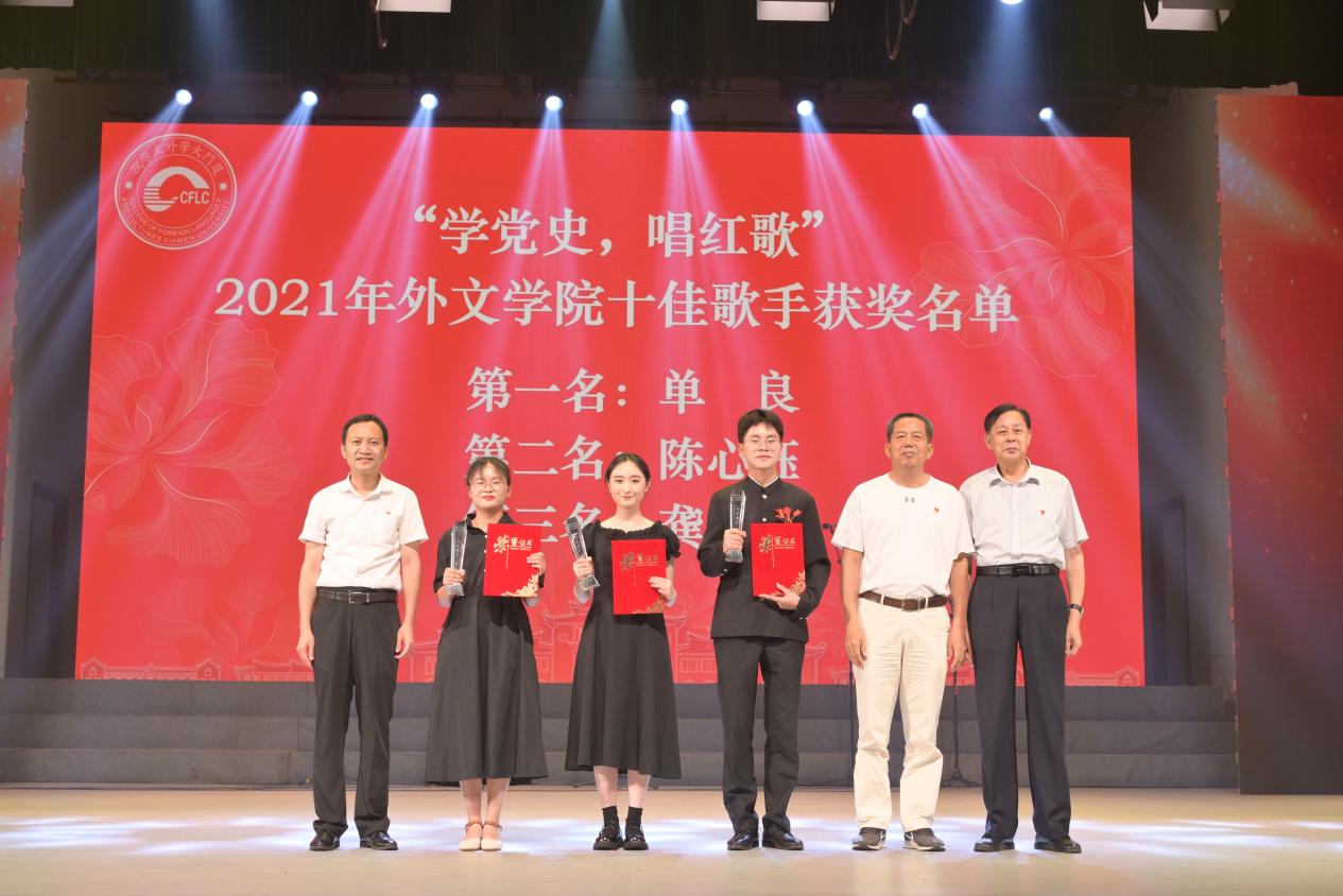 汇演现场还举行了“学党史 唱红歌”2021年外文学院十佳歌手颁奖仪式,莅临现场的领导嘉宾为十佳歌手颁发了证书和奖杯。