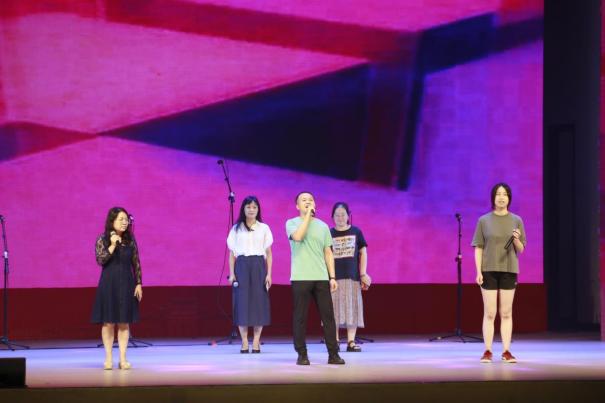 本次文艺汇演中,外文教职工也积极参与,他们的深情演绎充分表达了爱党爱国情怀。离退休教师张秀明带来独唱《春天的故事》,悦耳动人的歌声带大家回到了那个万象更新的春天,激发了在场观众们的强烈共鸣。郭亚娟、黄妍艳、吴珊珊、蔡宇、邹柳新、王玉菡六位老师则为大家带来《洪湖水浪打浪》《万泉河水清又清》《红旗飘飘》歌曲串烧,他们的热情点燃全场,赢得了阵阵欢呼与喝彩。