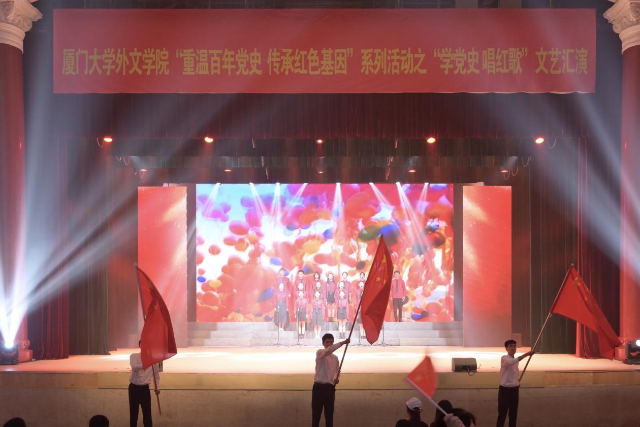 百年华章,以声献礼。5月29日晚,外文学院“重温百年党史,传承红色基因”系列活动之“学党史 唱红歌”文艺汇演在建南大会堂隆重举行。外文学院师生代表组成了十余支合唱队,以歌声回顾百年党史,用旋律铭记初心使命,彰显了外文师生学党史、听党话、 跟党走的坚定决心。厦门大学党史学习教育第五指导组组长杨敬达,学校基层党建工作联络员黄定基,学生处处长李峰,组织部副部长乔连全,宣传部副部长楼红英,教师工作部副部长伍伟平,外文学院党委书记陈志伟,党委副书记马龙、沈丽秀,副院长李美华、徐琪、辛志英,英语系副主任林斌,工会主席潘宁等莅临活动现场。