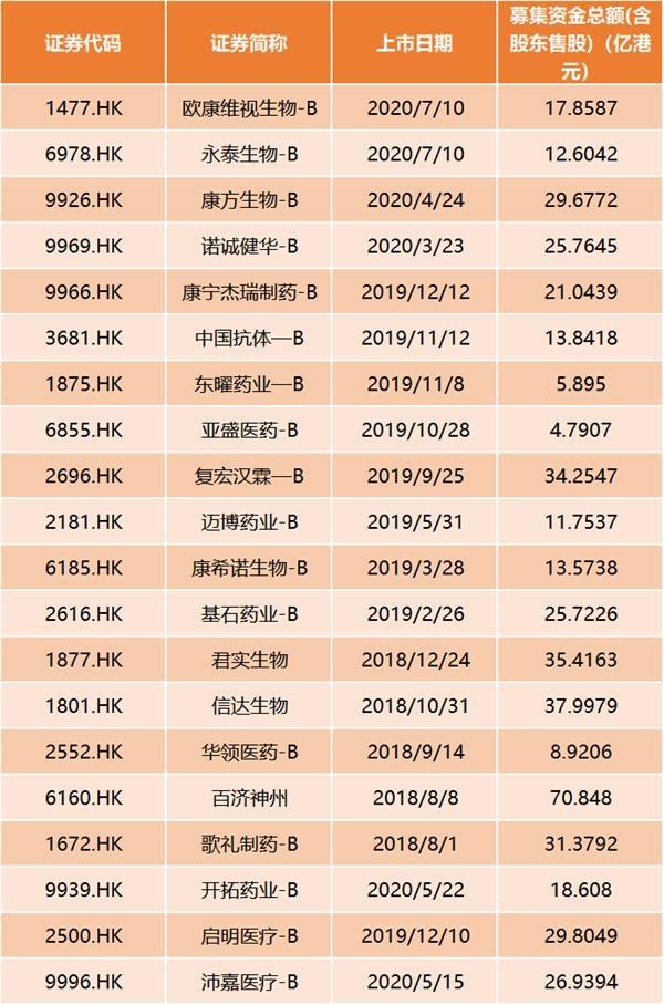 截至2020年9月30日,在香港以第18A章上市的未盈利生物科技公司已达20家,较去年同期的8家增加了12家,募集资金总额达到476.7亿港元。