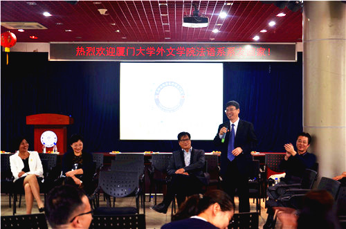 接着,由鲁京明老师作厦大法语系历史回顾与现状介绍。伴随着屏幕上一张张老照片,鲁老师将法语系的历史沿革娓娓道来,同时缅怀为法语系的发展殚精竭虑已经离开了我们的老前辈,感谢培养了一批又一批优秀法语人才的退休老教师冯寿农教授、黄贵成副教授、丁志强副教授、李燕玉副教授等,他们每一位都为厦大法语系做出了不可磨灭的贡献,每一位都是备受历届学生尊崇的良师益友。鲁老师还介绍了历任外教,在法语专业工作过的外教前后共有二十几位,其中她特别提到了Madame Fran?oise Pinot的故事。Pinot老师是一位对外法语教学专家,曾在厦大法语系任教5年,她对教学兢兢业业,将大半辈子都献给了中国的法语教学事业。最后她介绍了法语系的师资、科研、人才培养方面的情况,希望系友多为在校学生提供实习、就业、创新创业训练方面的支持,并希望系友们能够担任本科生的校外导师,探索校企合作培养人才的模式。