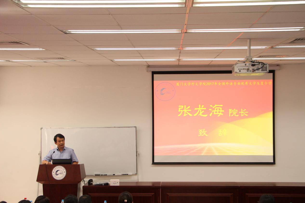 7月15日上午九点,外文学院全国外语专业优秀大学生暑期夏令营正式开营。厦门大学外文学院院长张龙海、党委副书记郑新风、副院长徐琪、副院长辛志英等领导老师出席了本次开营仪式,介绍了外文学院的办学历史与科研情况,希望同学们在夏令营期间学习生活愉快,预祝本次夏令营圆满成功。