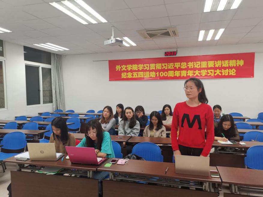 为纪念五四运动一百周年,5月6日晚,为纪念五四运动一百周年,外文学院翻译硕士党支部以“五四百年,薪火相传”为主题开展5月的“固定当党日+”活动,组织支部党员学习习近平总书记在纪念五四运动100周年大会上的讲话精神,重温五四历史,体会五四精神。