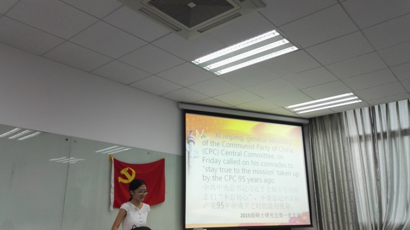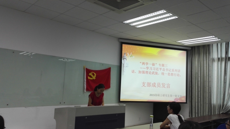 2016年9月28日中午,2015级研究生第一党支部成员放弃午休,在南光三415举行“两学一做”学习教育第三阶段学习研讨。本次专题学习研讨由支部书记曾慧芳主持,孟玲同志、郑桂珠同志与方静同志作重点发言。