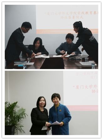 2016年3月17日下午,华体网与厦门奥梅埃森设计文化传播有限公司签署“厦门大学外文学院实践教育基地”协议仪式在南光三524会议室举行。厦门奥梅埃森设计文化传播有限公司施洁予总经理、姚远副总经理、陈昊洋副总经理等一行与华体网徐琪副院长、法语系主任胡老师、欧语系副主任方老师等师生代表共同出席。